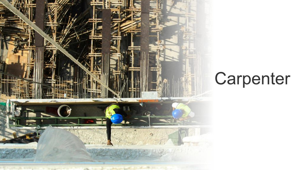 Carpenters are skilled craftsmen who specialize in working with wood and other materials to construct and repair structures, fixtures, and furniture. From framing buildings and installing cabinets to crafting intricate trim and molding, carpenters bring architectural plans to life with precision and craftsmanship. With a keen eye for detail and a mastery of various tools and techniques, carpenters create functional and aesthetically pleasing spaces that enhance both the form and function of the built environment.